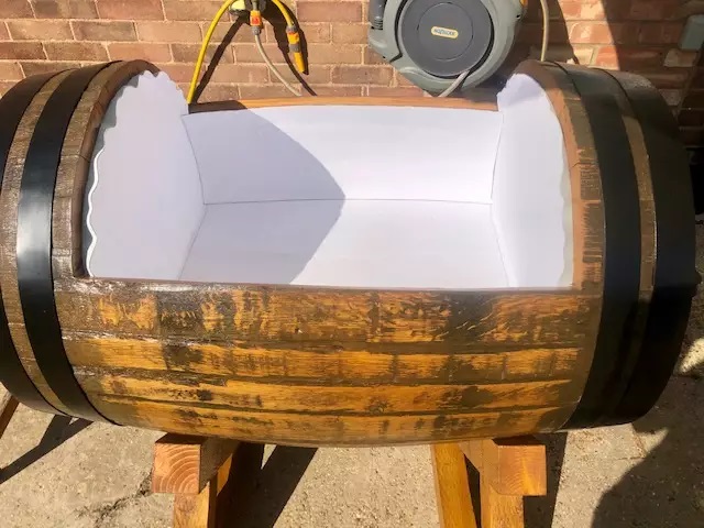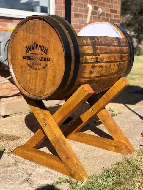 A father-to-be has gone viral after designing and building a cool-looking cradle out of an old whiskey barrel for his upcoming baby.
