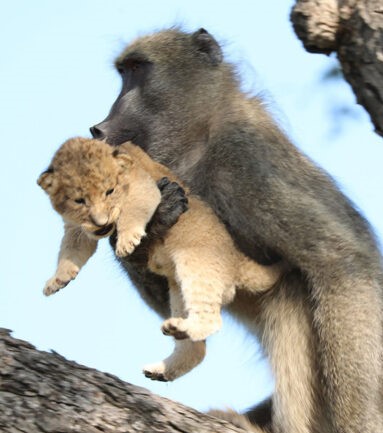 As Mr. Schultz explained, he had seen plenty of male baboons carry tiny lion cubs up the trees or boulders in South Africa’s Kruger National Park only for the primates to throw them to their death.