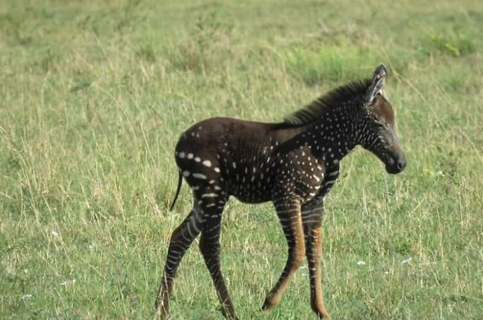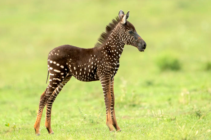 Oh wait, this baby zebra is not only adorable because it is a baby but because it is a rare zebra with spots instead of stripes.
