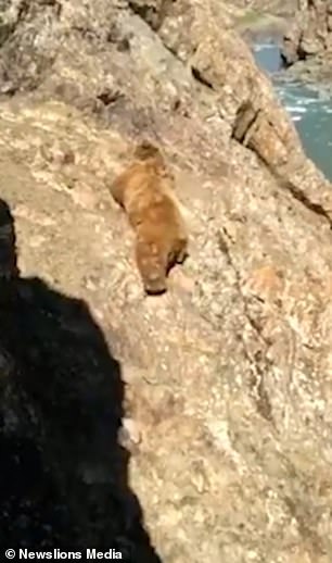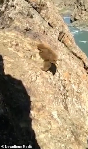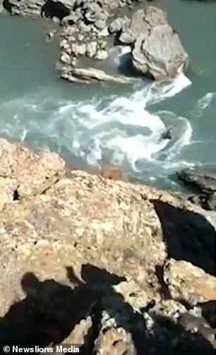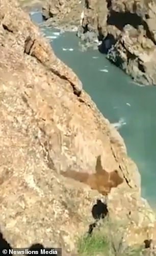 The shocking video footage was shared online and was slammed by Internet users. One wrote: ‘Had I been there I swear on my mom I would have pushed people throwing stones at the bear into the water’