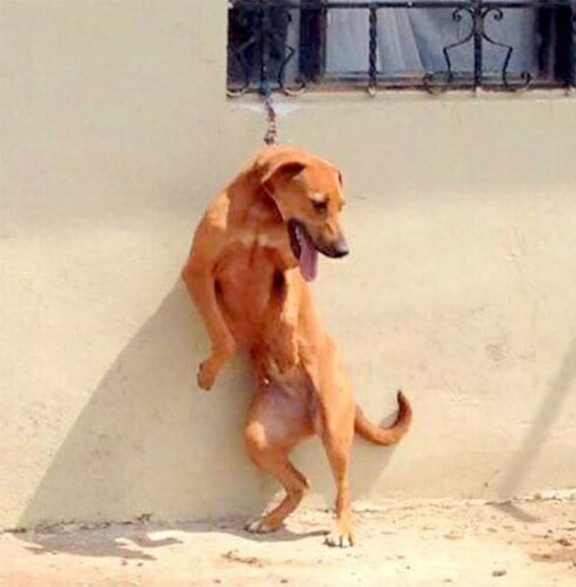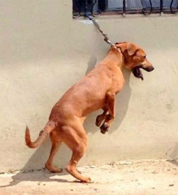 The pictures of a dog dangling from a window by a very short chain which made him stand on its hind legs under the scorching heat in Teloloapan, Mexico, fumed animal lovers.