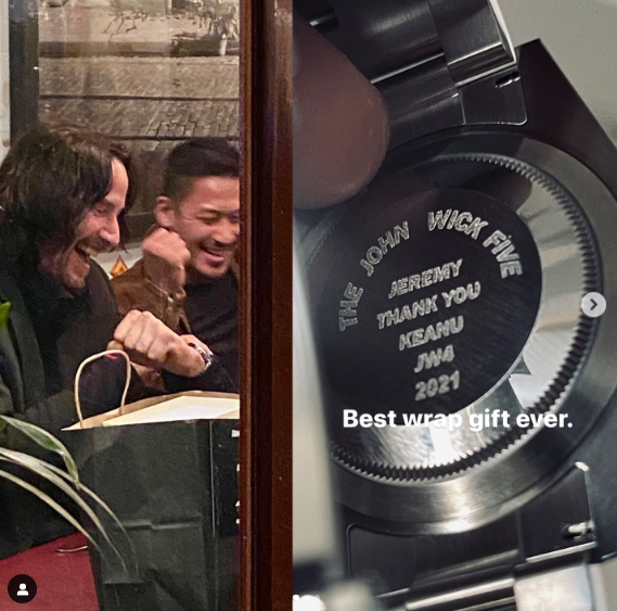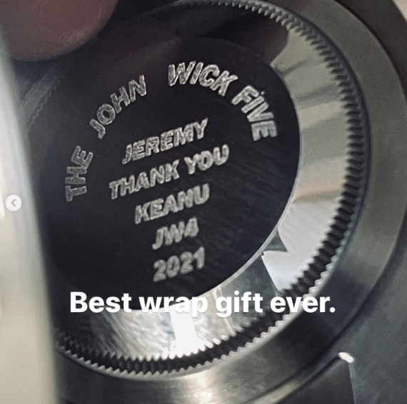 Sharing a photo of the watches on Instagram, Marinas wrote: “Best wrap gift ever,” and revealed that the inside of his watch was engraved with message: “Jeremy Thank You Keanu JW4 2021.”