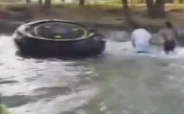 A video obtained by Good Morning America shows the parents screaming in the water as their children, still strapped into the raft, drown in the fast-moving current.
