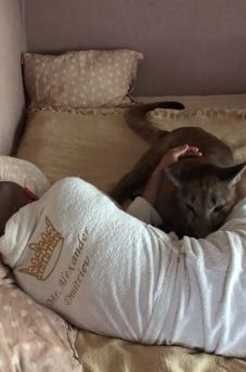 In this video, a pet cougar is seen waking up his owner. The video is really adorable as the cougar makes constant efforts to wake his owner. It seems like he wants to play, and the owner needs to complete his sleep.