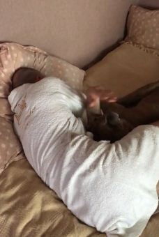 At the end of the video, Messi was successful in waking his owner and gave him warm cuddles.
