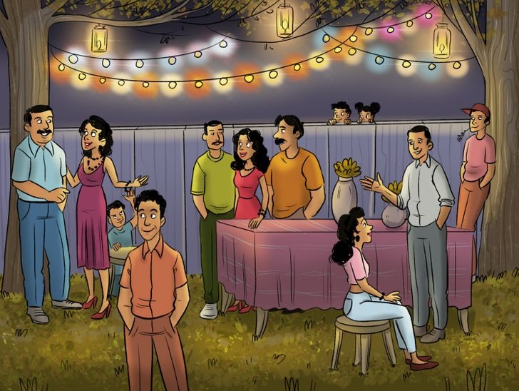 Can you zoom in and figure out which one of the guests is actually a robber? Remember, you need to zoom in for the details. Good luck!