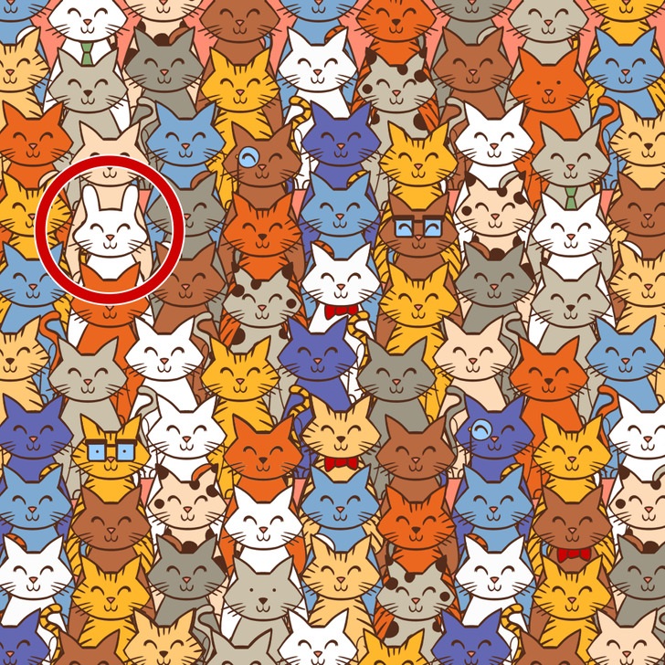 It’s time to put your eyes to the test and find a bunny who’s hiding among dozens of cats.