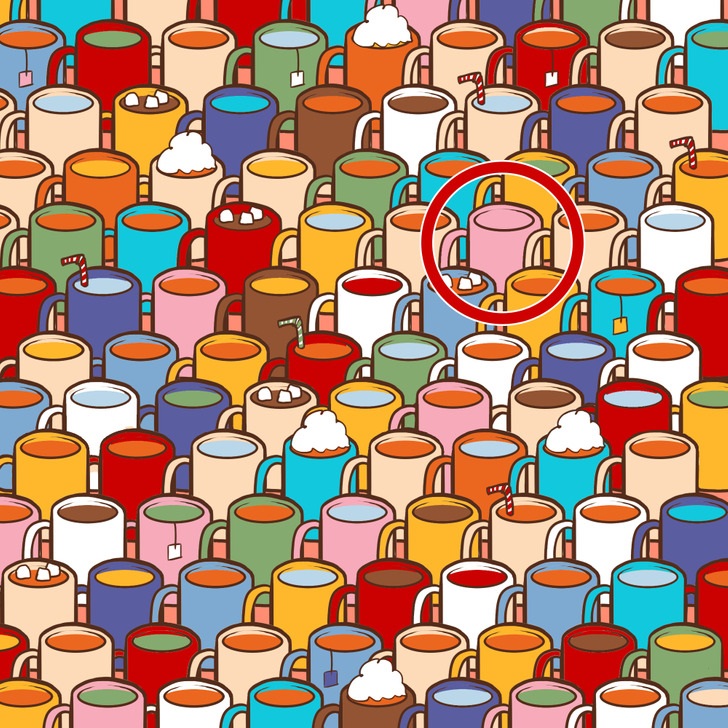 While all of the cups above appear to be filled with juice, water, coffee, or tea, one of them is actually empty and it’s your job to find it.
