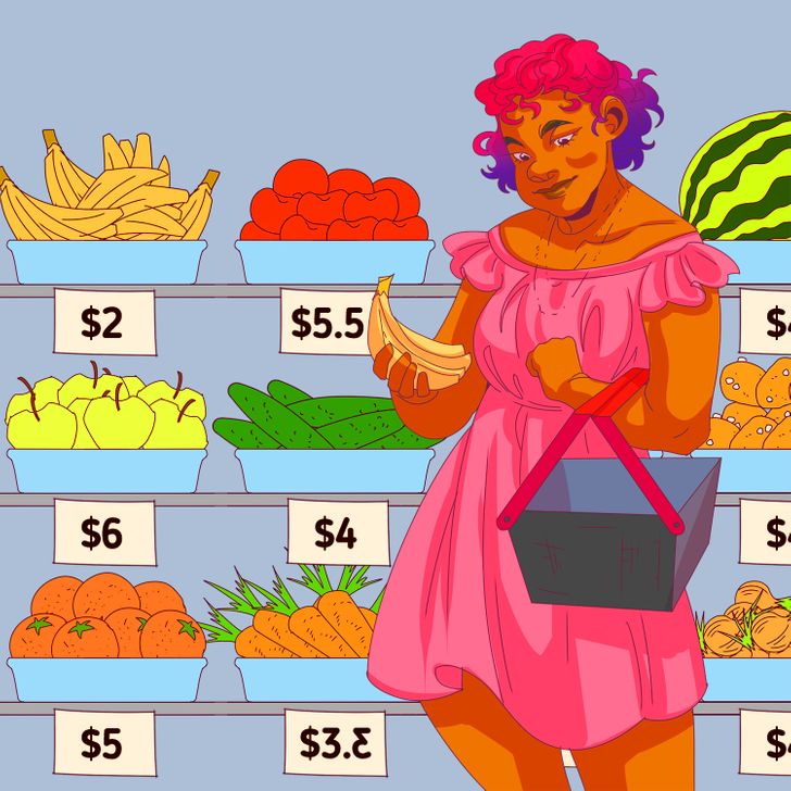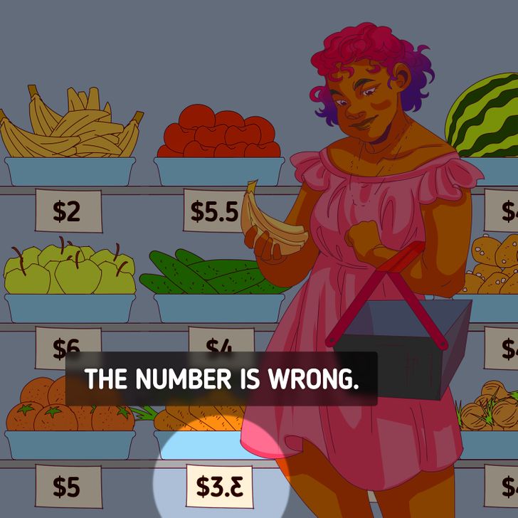 Can you spot the mistake in this picture of a woman buying some fruits and vegetables?