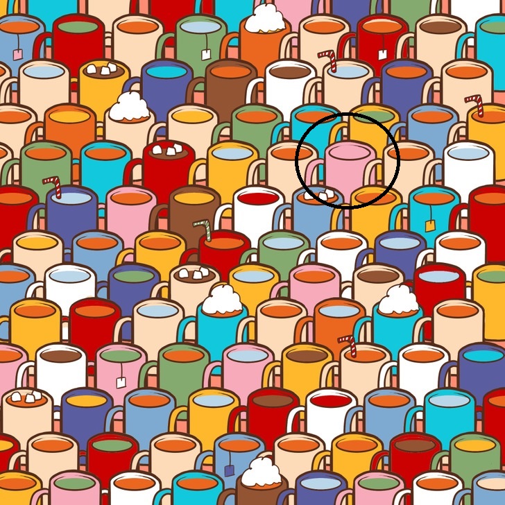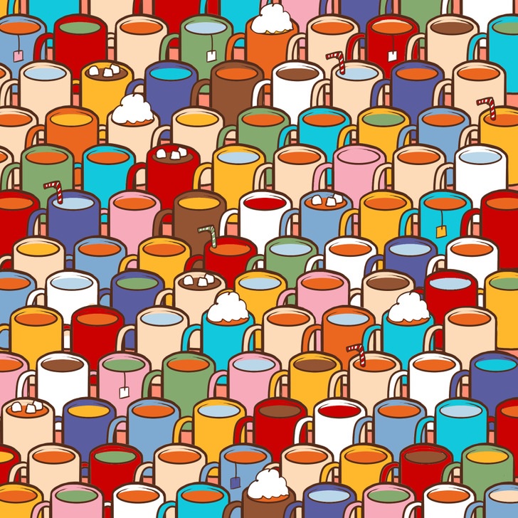 While they all appear to be full at first sight, one of the cups is empty. Can you spot it in less than 10 seconds?