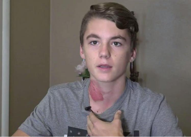 “I felt this really bad burning on my neck and when I woke up and I started screaming and crying,” Nicholas said in a YouTube video.