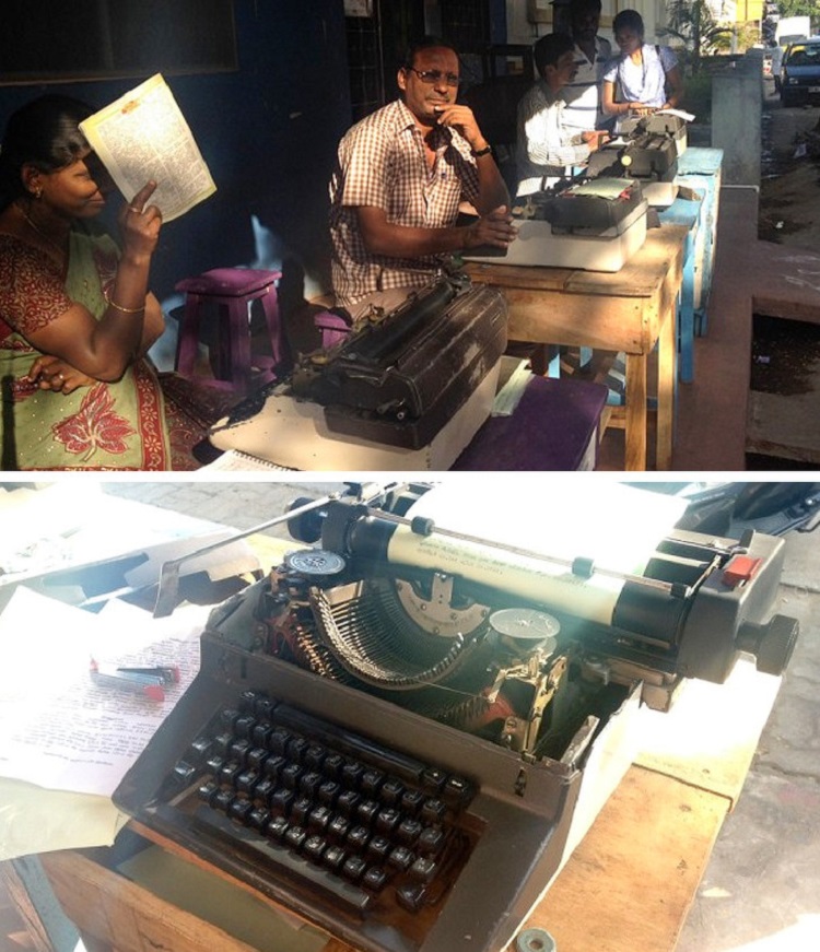 Special secretaries that can type official documents still exist because many people in India still don’t have access to computers or even typewriters. They typically ply their business on the streets.