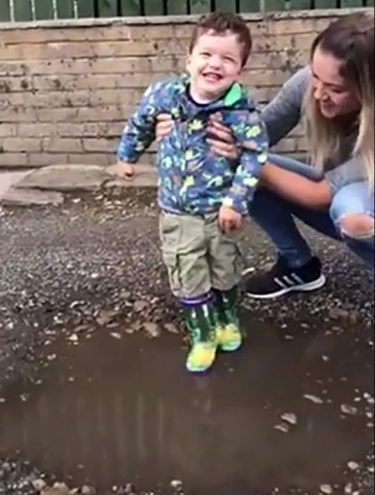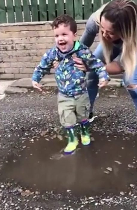Even if Wilson suffers from the condition, he still is a toddler. His mother took her out on a rainy day. For the first time, Wilson jumped in a mud puddle and his joy at the moment was so precious.