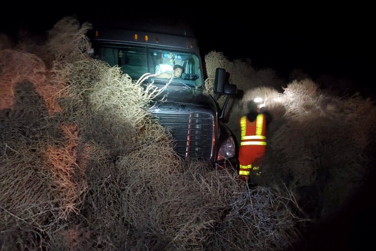 Once the tumbleweeds started rolling down the 40-foot berms, drivers decided to pull over because it was getting hard to see. Thorson said that it was a smart move but ironically, the stopped cars also provided a barrier that prevented the tumbleweeds from rolling into the desert and they continued to pile up.