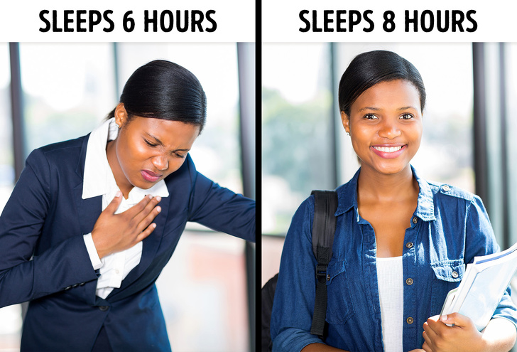 Scientists found that getting enough sleep reduces our level of stress, and prevent the risk of getting high blood pressure and high cholesterol too. Sleep deprivation may also lead to all sorts of heart-related issues.