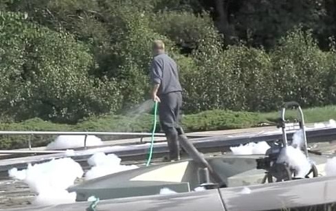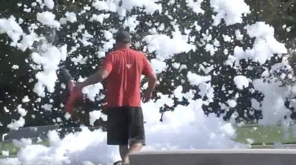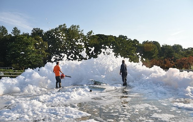 “It appears someone dumped a few gallons of dish detergent into the fountain. That created a bubble mass the whole entire width of the fountain itself and about five feet high,” Lower Makefield Police Department’s Lt. Jason Braim confirmed.