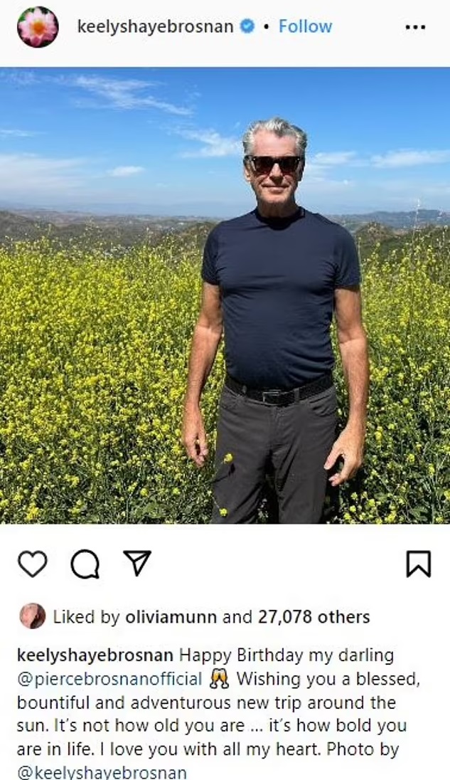 “Happy Birthday my darling @piercebrosnanofficial! Wishing you a blessed, bountiful, and adventurous new trip around the sun. It’s not how old you are – it’s how bold you are in life. I love you with all my heart,” Keely wrote in a tribute to her husband of 21 years on his birthday.