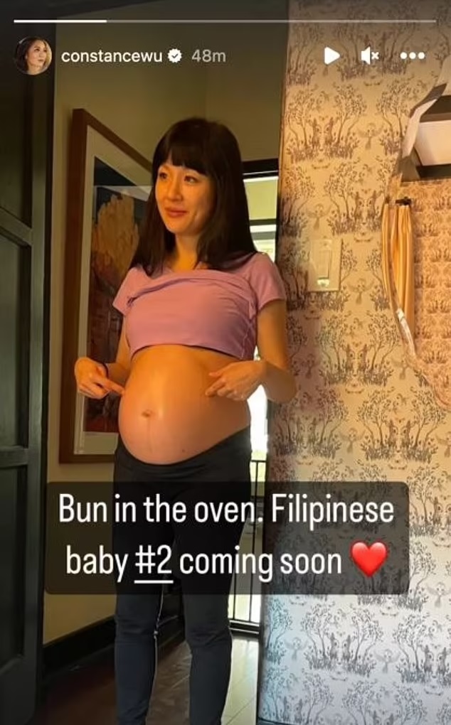 Sharing an old pregnancy photo from February, the actress added: “Bun in the oven. Filipinese baby #2 coming soon.”