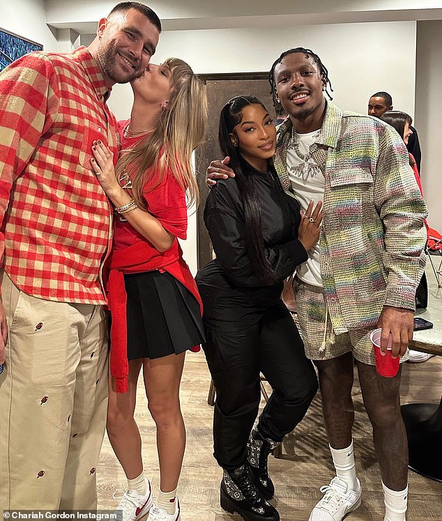 But it was not only Taylor, Chariah Gordon was also seen posing alongside her lover Mecole as well as Taylor and Travis. That is the point where Taylor kissed her pro-football-playing lover during the evening hours of Sunday.
