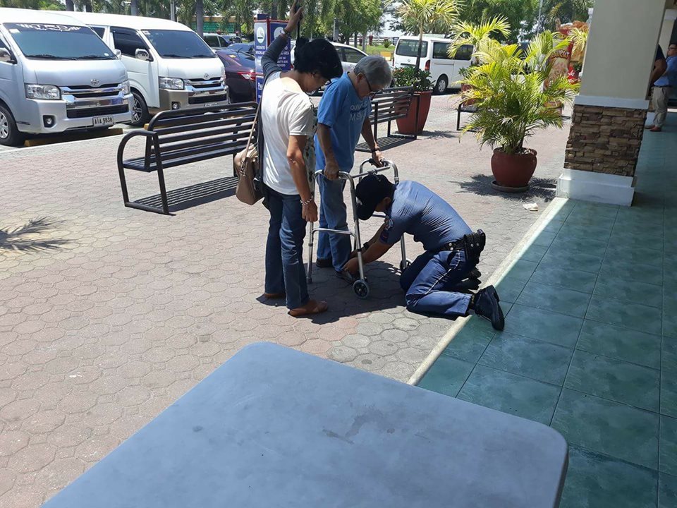 As soon as the elderly man exited the van that brought him and his wife to the Mega Station, PO1 Jerald Lagazon rushed towards the couple and helped the man step down from the van.