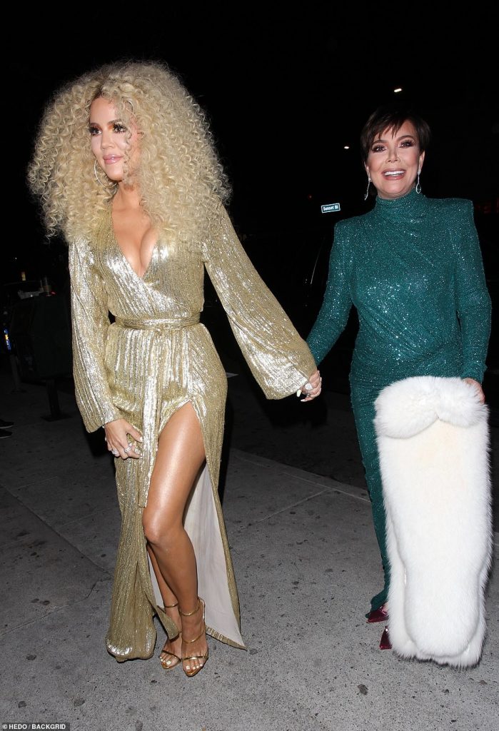 Khloe filmed the night on her Instagram story. In one video taken during the car ride, she showed off her look saying, “You guys, bras like this make me want to get my boobs done because this cleavage, I mean, it’s iconic.”