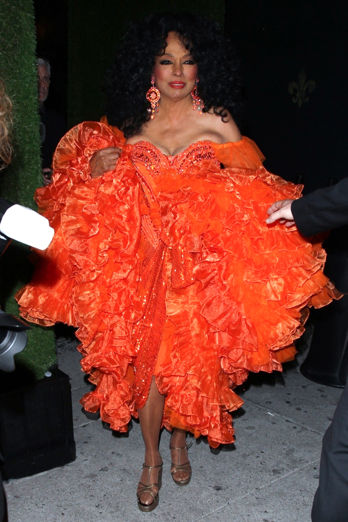 Ross, herself, wore a bright orange ruffled dress to the party, accessorized her look with matching earrings.