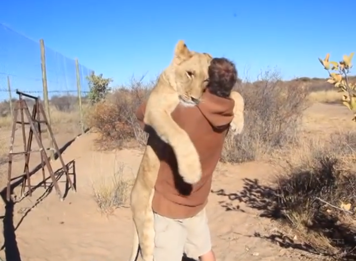 Watch Lioness Jump Into The Arms Of Her Old Friend!