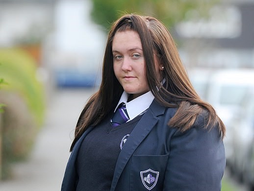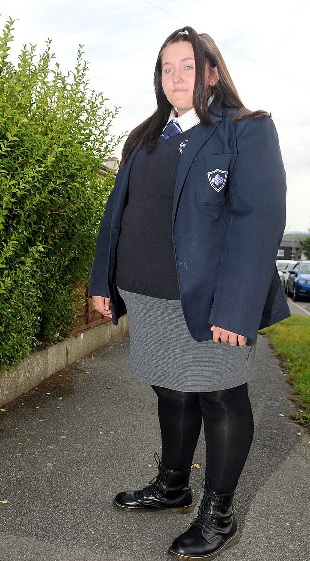 An upset schoolgirl has spoken out about how she was banned from taking classes because she is too big to fit in her uniform skirt.