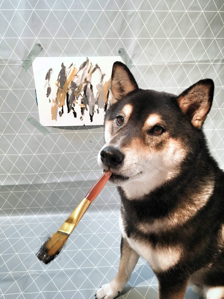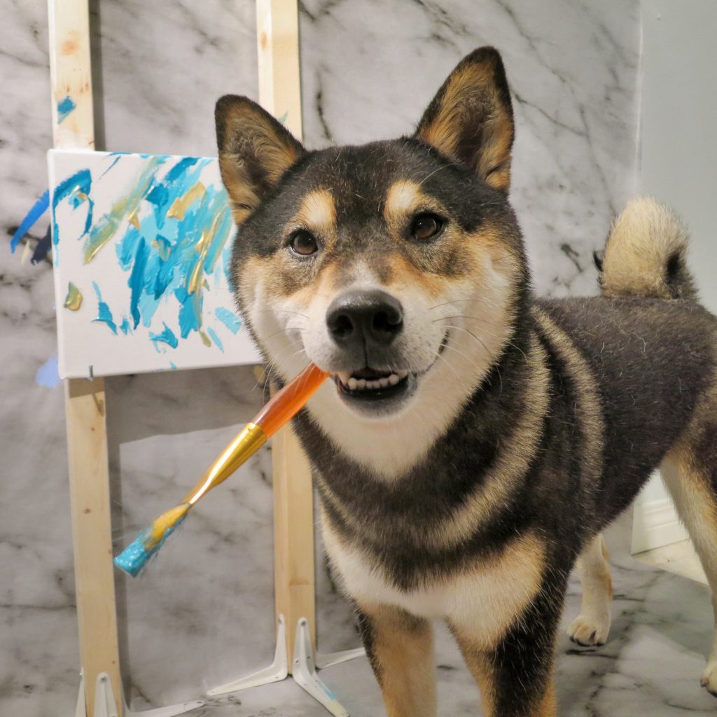 Hunter the Shiba Inu is a pawcasso who earns his owners thousands of dollars by painting abstract masterpieces. To get his vision onto the canvas, Hunter uses its mouth to paint with brushes that his owners hand over to him.