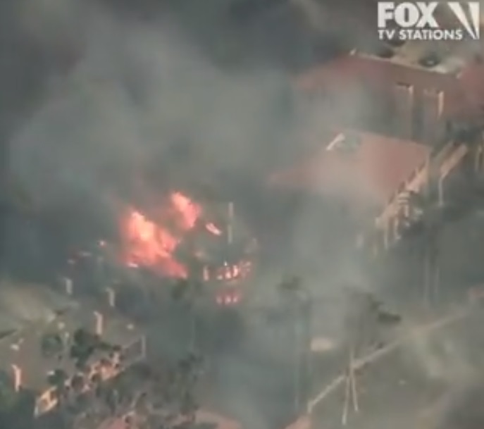 At least 13 homes have so far burned in the brush fire. No deaths or injuries have yet been reported.