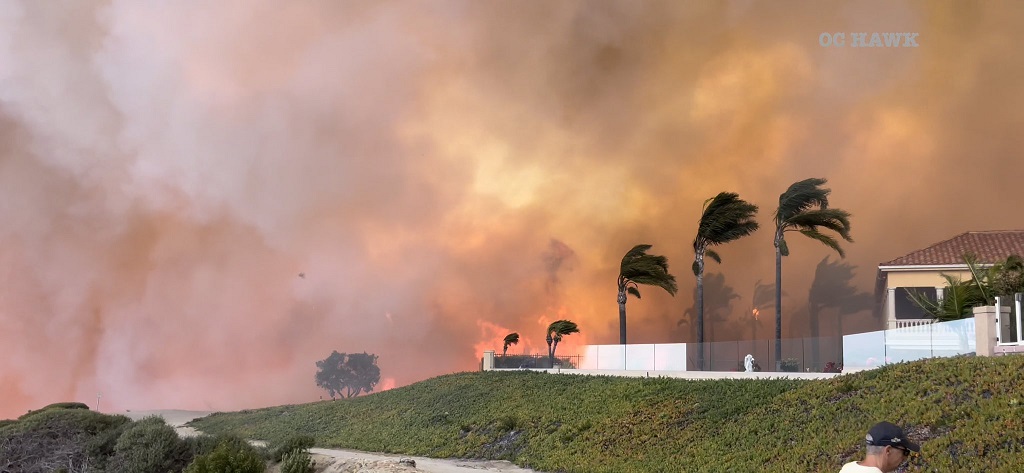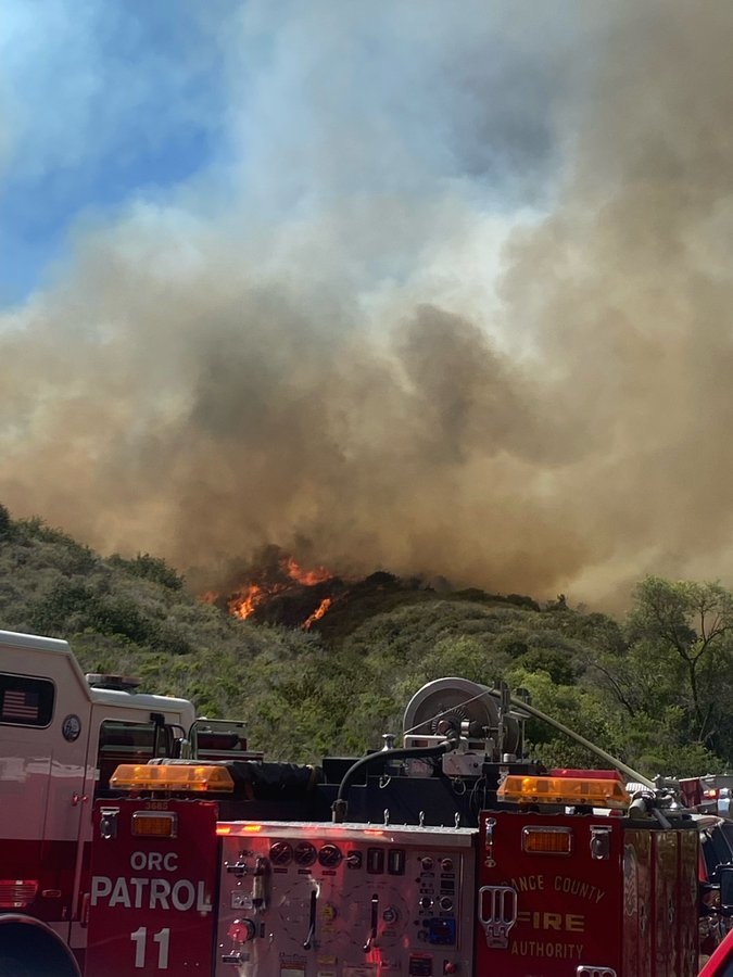 The raging blaze, which has since been dubbed the Coastal Fire, started near a water treatment plant between Laguna Beach and Laguna Niguel just before 3 pm local time.