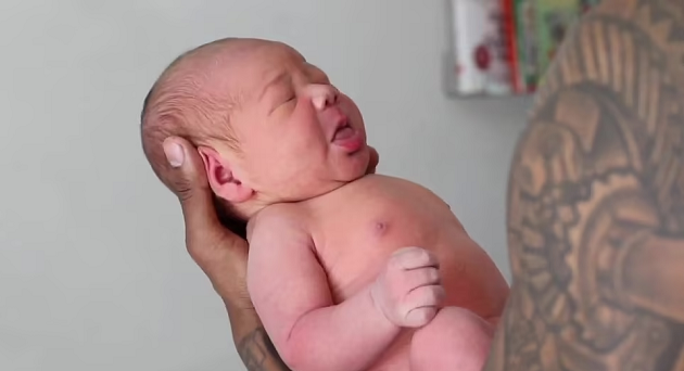 Their baby was born weighing 8lbs 10oz, measuring 53cm.