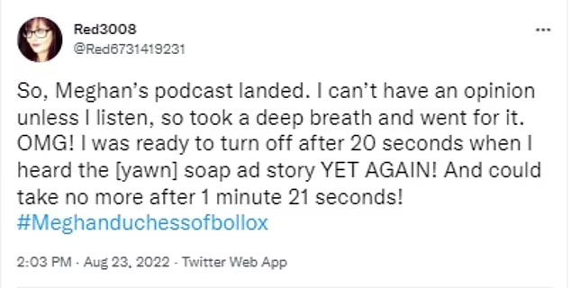 But social media users slammed the mother-of-two for sharing the ‘yawn-inducing’ story again, describing the podcast as ‘unbearable.’