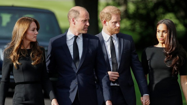 The couple was seen making their way in public with William and Kate on Saturday where they were welcomed by crowds. The couples walked around and glanced over stunning tributes and beautiful displays that were laid out in honor of Her Majesty.