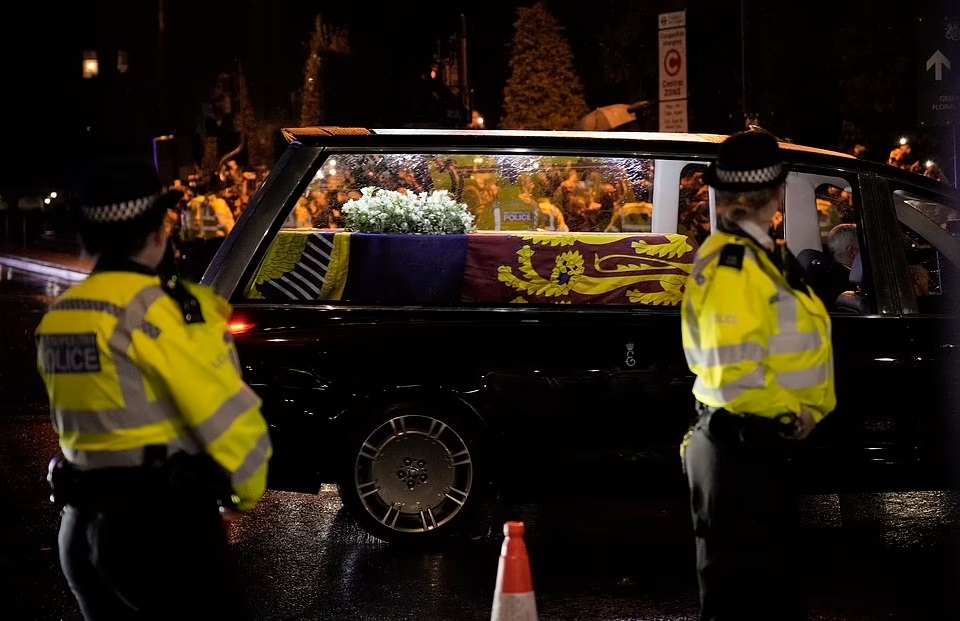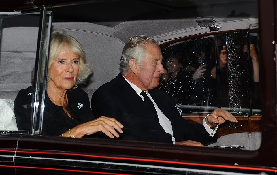 On Tuesday night, Queen Elizabeth II’s three children – King Charles, Prince Andrew, and Prince Edward – were flanked by Prince William, Kate, Prince Harry, and Meghan as they awaited the arrival of the Queen and Princess Anne who accompanied her mother’s coffin on the journey to London after the longest-reigning British monarch passed away at Balmoral.