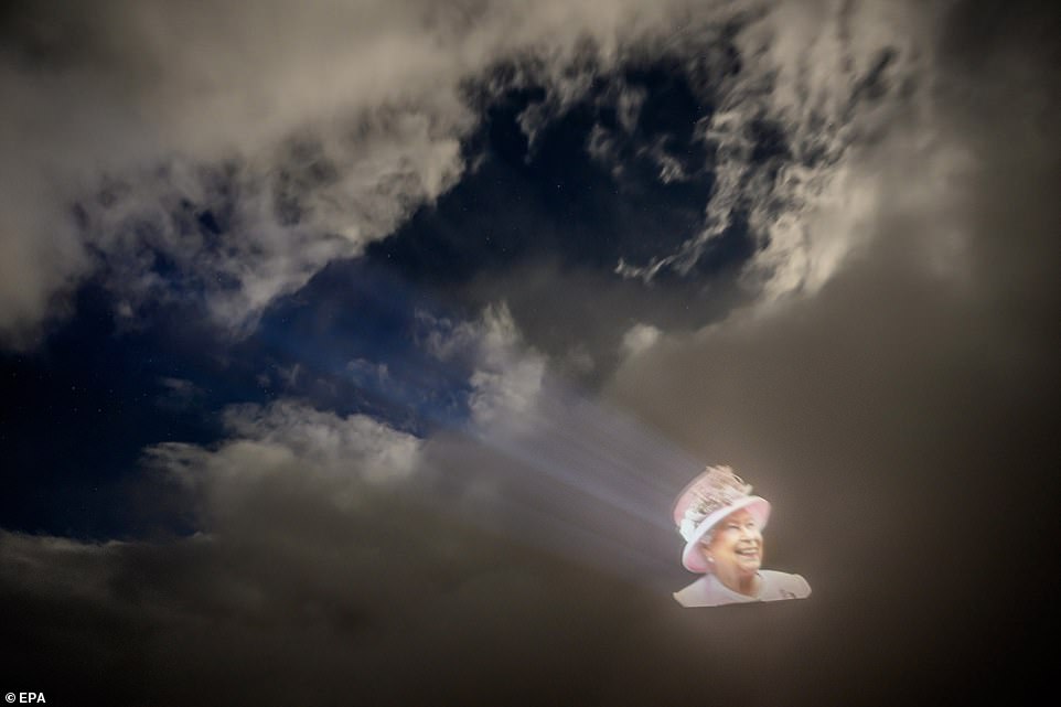 The artist projected the images of the queen and Prince Philip on the clouds in the sky in Switzerland. And it just added an element of drama and love to a beautiful and heartwarming moment.