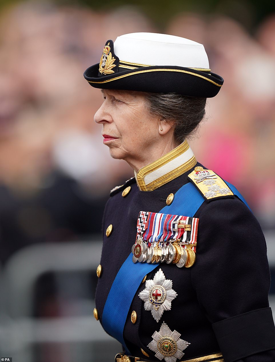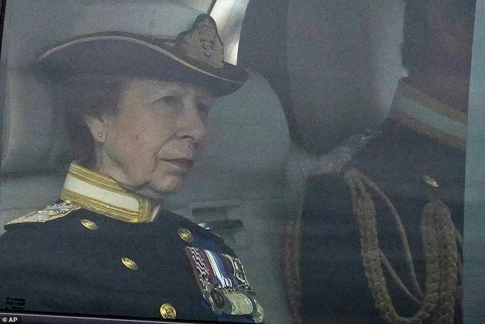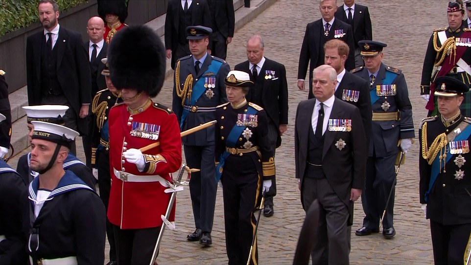Princess Anne was the only female seen at the Queen’s coffin procession today, being joined by her brothers on the walk to Westminster Abbey for the late Queen’s funeral.