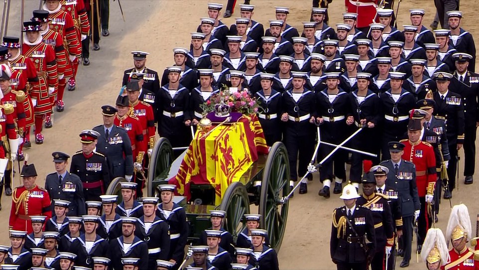 The mother of two was the only woman to make her way behind the Queen’s coffin as it headed into Abbey.