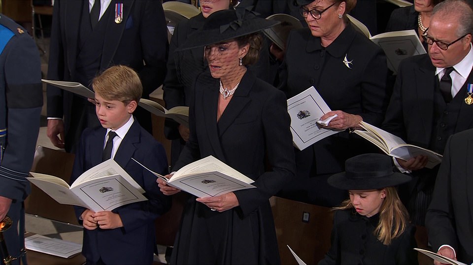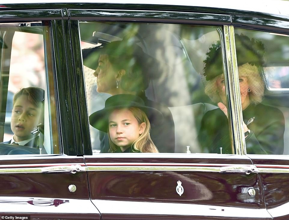 Little Princess Charlotte was seen giving her brother Prince George a lesson or two about royal protocol during the Queen’s funeral today.