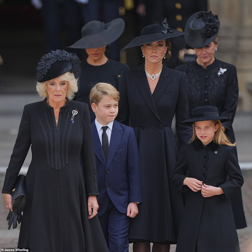 The little princess looked adorable in her black mourning coat with a velour collar and a matching wide-brimmed hat. On the other hand, little Prince George was seen donning a navy blue attire that came complete with a black tie.