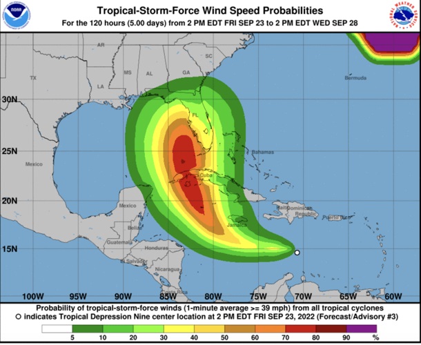 The tropical depression, which is expected to progress into a full-blown Category 3 hurricane, continues its way northward toward Florida and is expected to hit its southern parts by Monday evening.