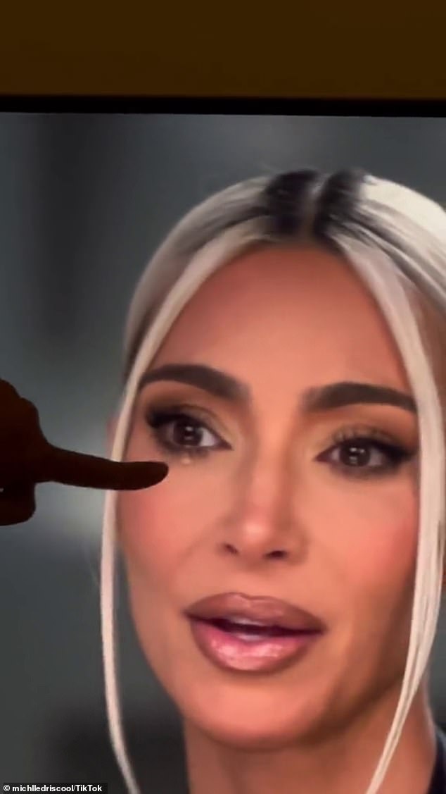 The user shows how the tear suddenly emerges at the bottom middle of Kim’s eye, instead of the corner where it would naturally form.