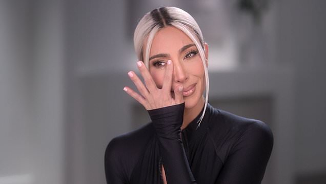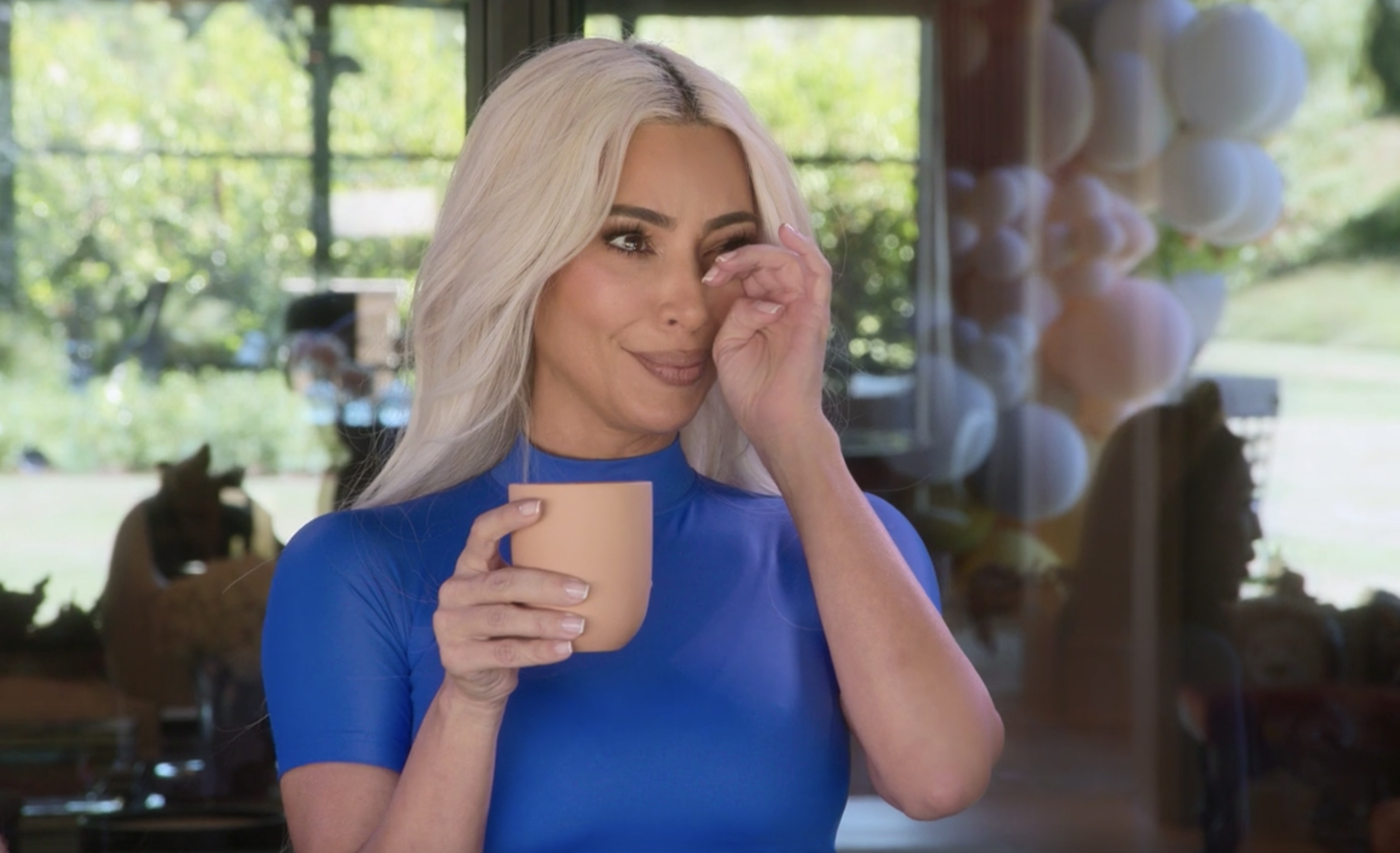 And then all of a sudden, Kim started to dry her eyes out but fails to touch the tear in the middle of her eye. And that instead starts to roll down her cheek.