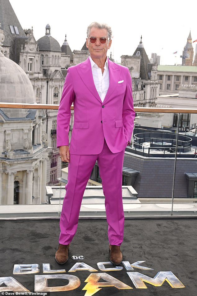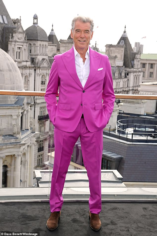Both co-stars were seen smiling and cheerful as ever. But the bright fuchsia tone of Pierce Brosnan seemed to really uplight the aura and mood. The celeb chose to pair his look with a pair of brown-toned shoes that went immaculately with his entire attire.
