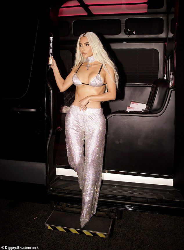 She chose to keep her hair long and blonde for the event while donning the most chunky and blingy jewels such as a cross pendant that complemented her barely-there attire.