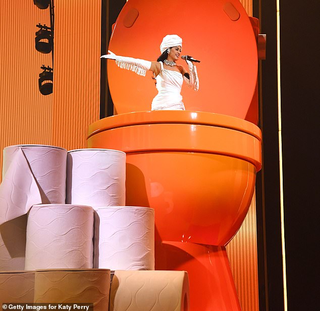 She was dressed in stunning attire that comprised a can-inspired theme of a silver-toned leotard. But then all of a sudden, things came to standstill when she paused and took a break to recover from the incident.