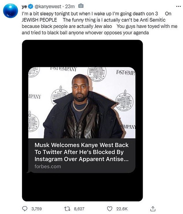 The rapper was seen being locked out of their Instagram and Twitter accounts for a few weeks after he posted some controversial anti-Semitic posts.