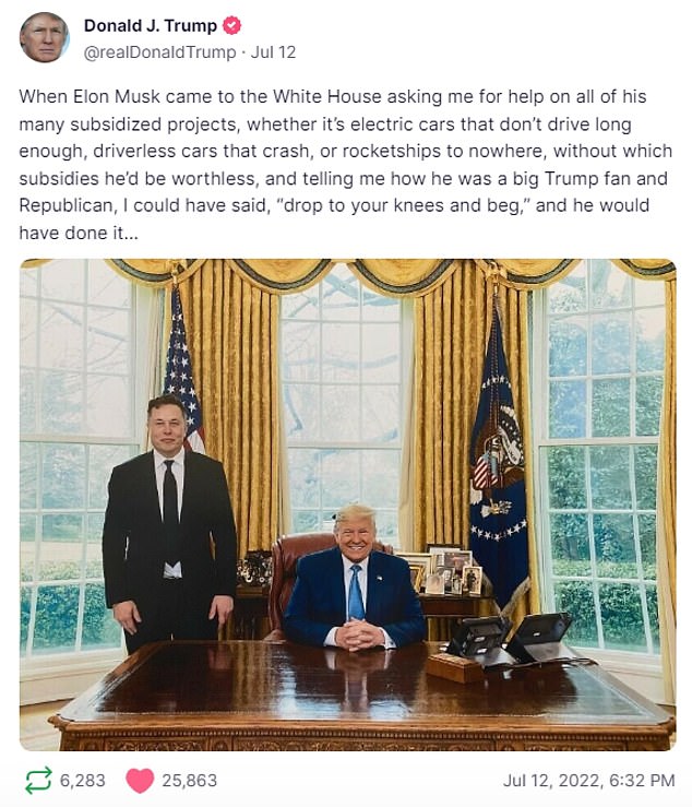 “Although I really like Elon Musk, I am going to stick to my Truth Social!”- he revealed.