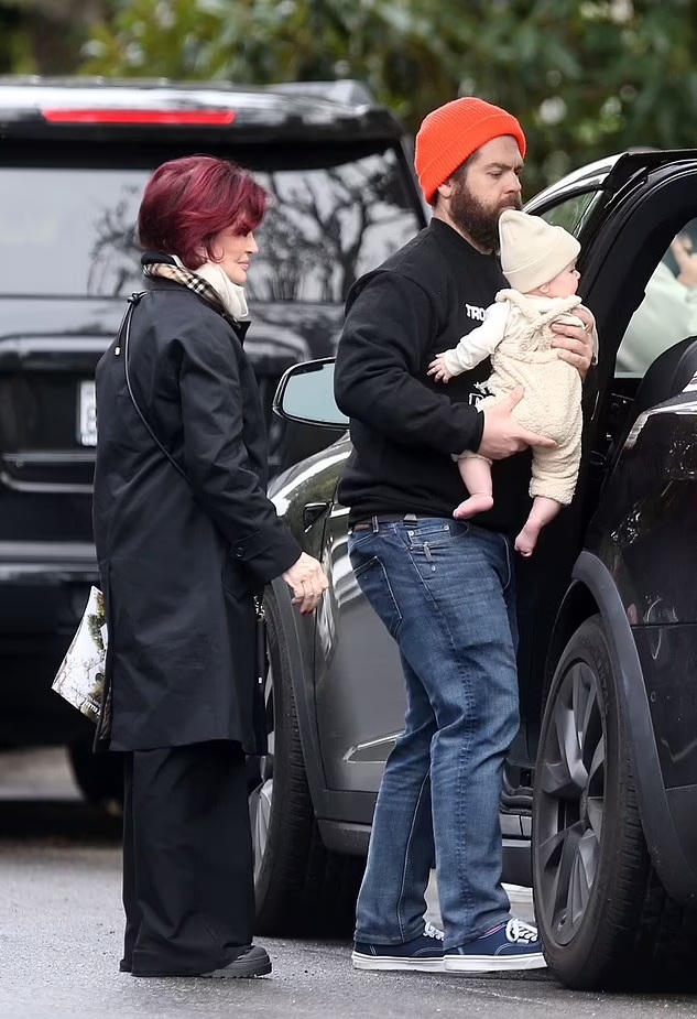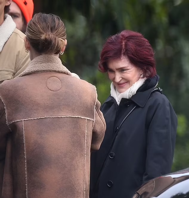 Sharon Osbourne was pictured fresh-faced during a day out with her son, daughter-in-law-to-be, and granddaughter in Los Angeles.