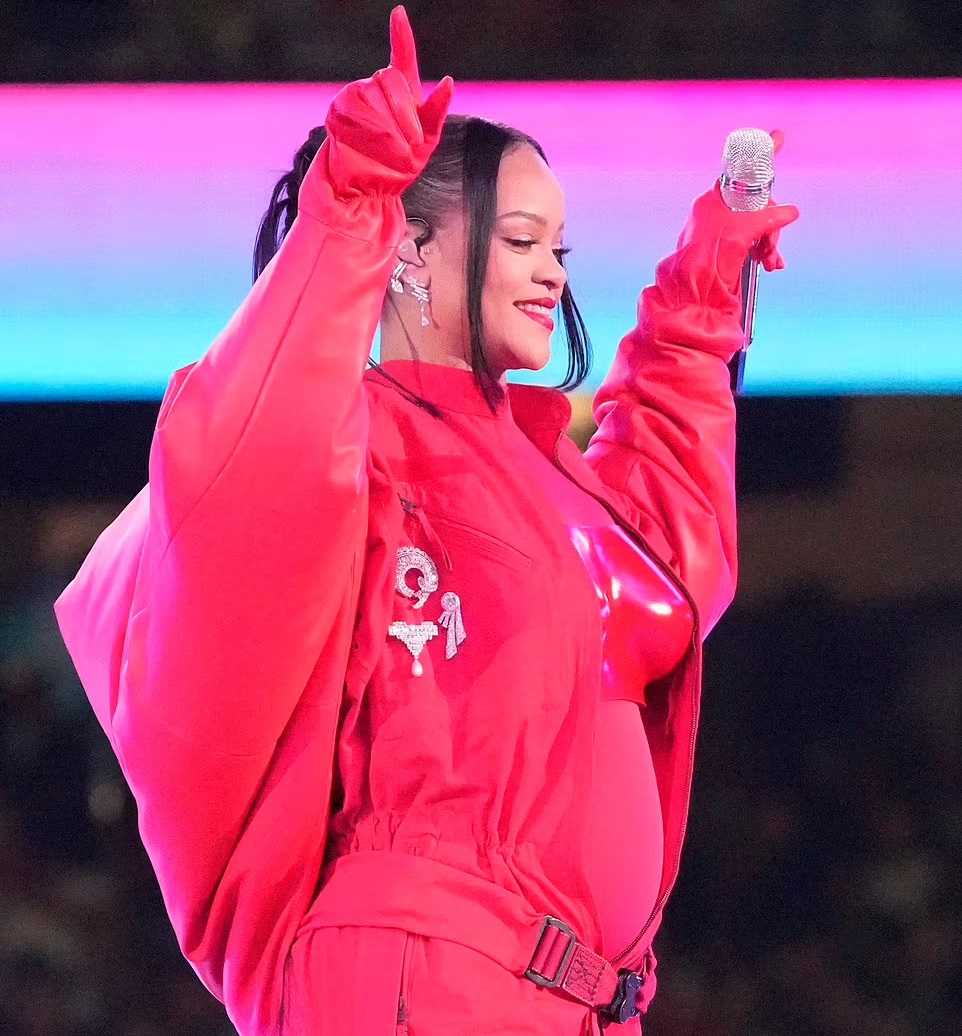 The pop superstar confirmed the happy news as she took to the Super Bowl 57 stage on Sunday and showed off her growing belly in front of the audience.